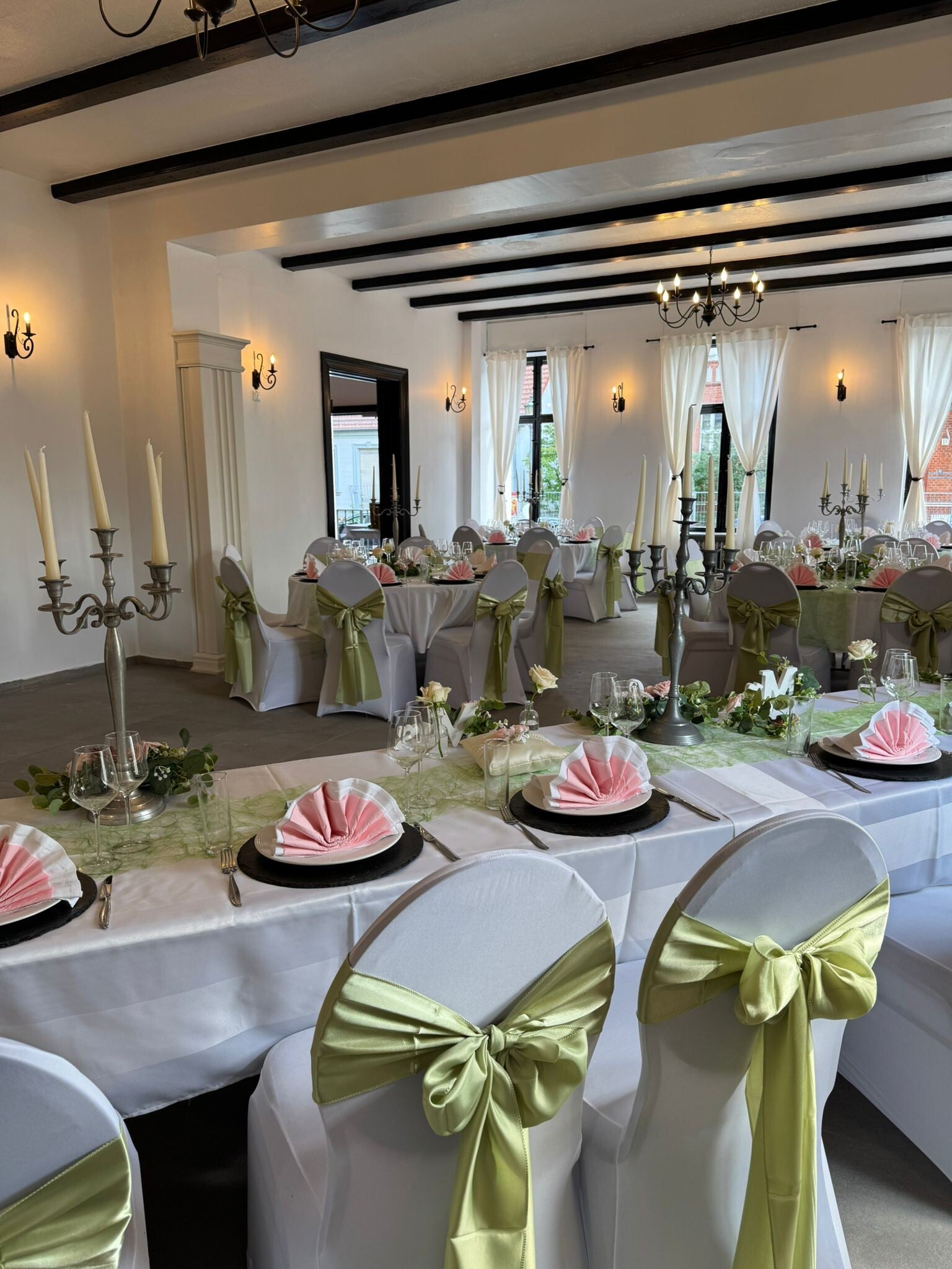 2. Dekoration in der Farbe Ihrer Wahl, dazu Stuhlhussen
